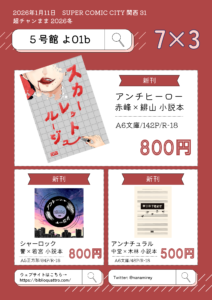 2026年1月11日開催SUPER COMIC CITY関西31のお品書きです!